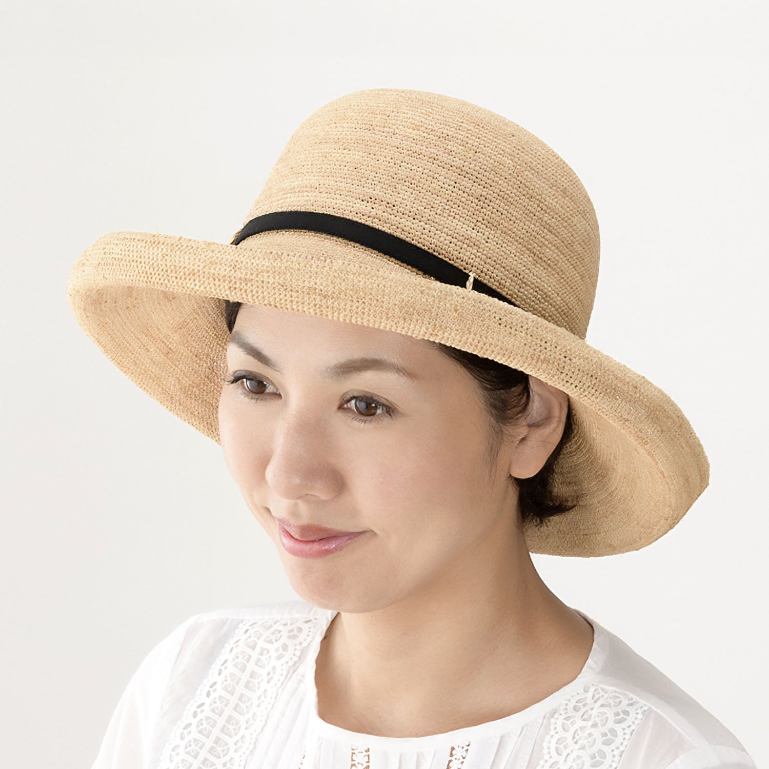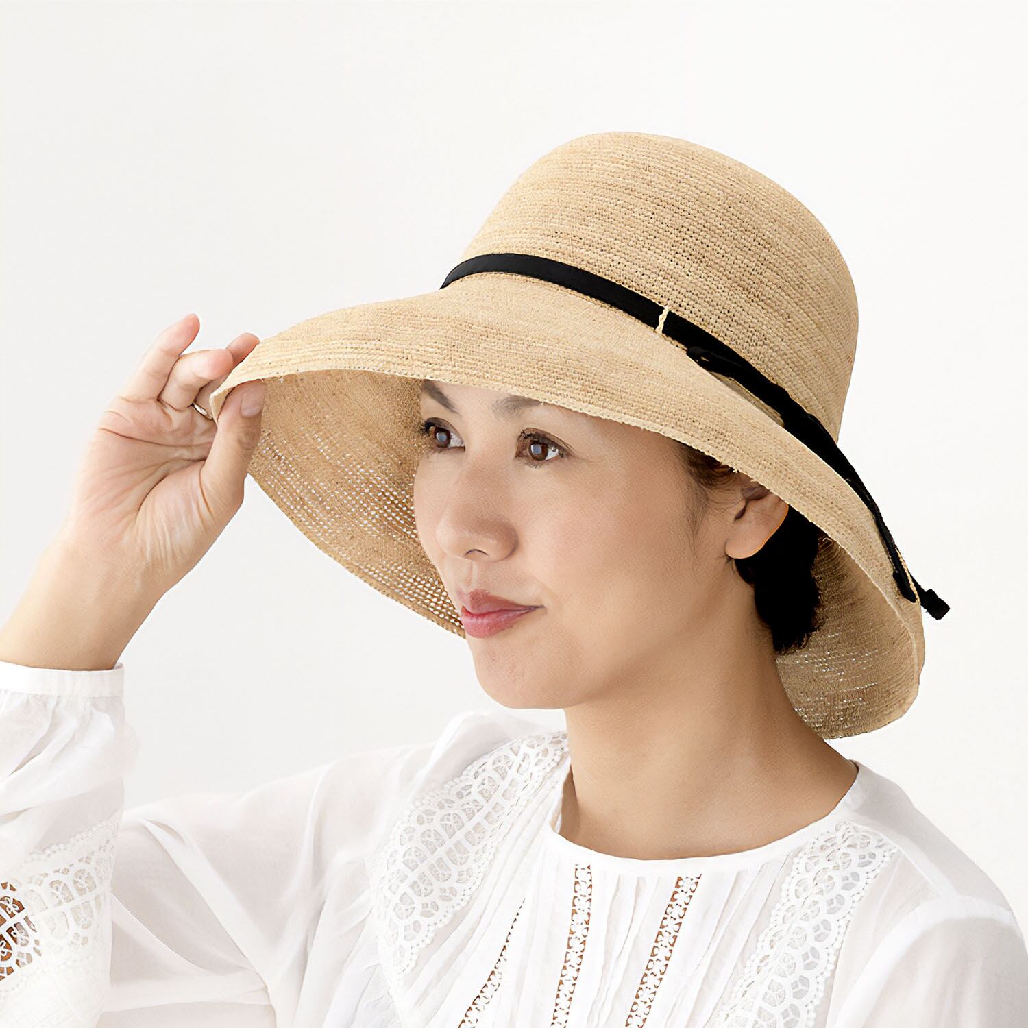 ■つばアップで軽やかな印象のラフィアハット