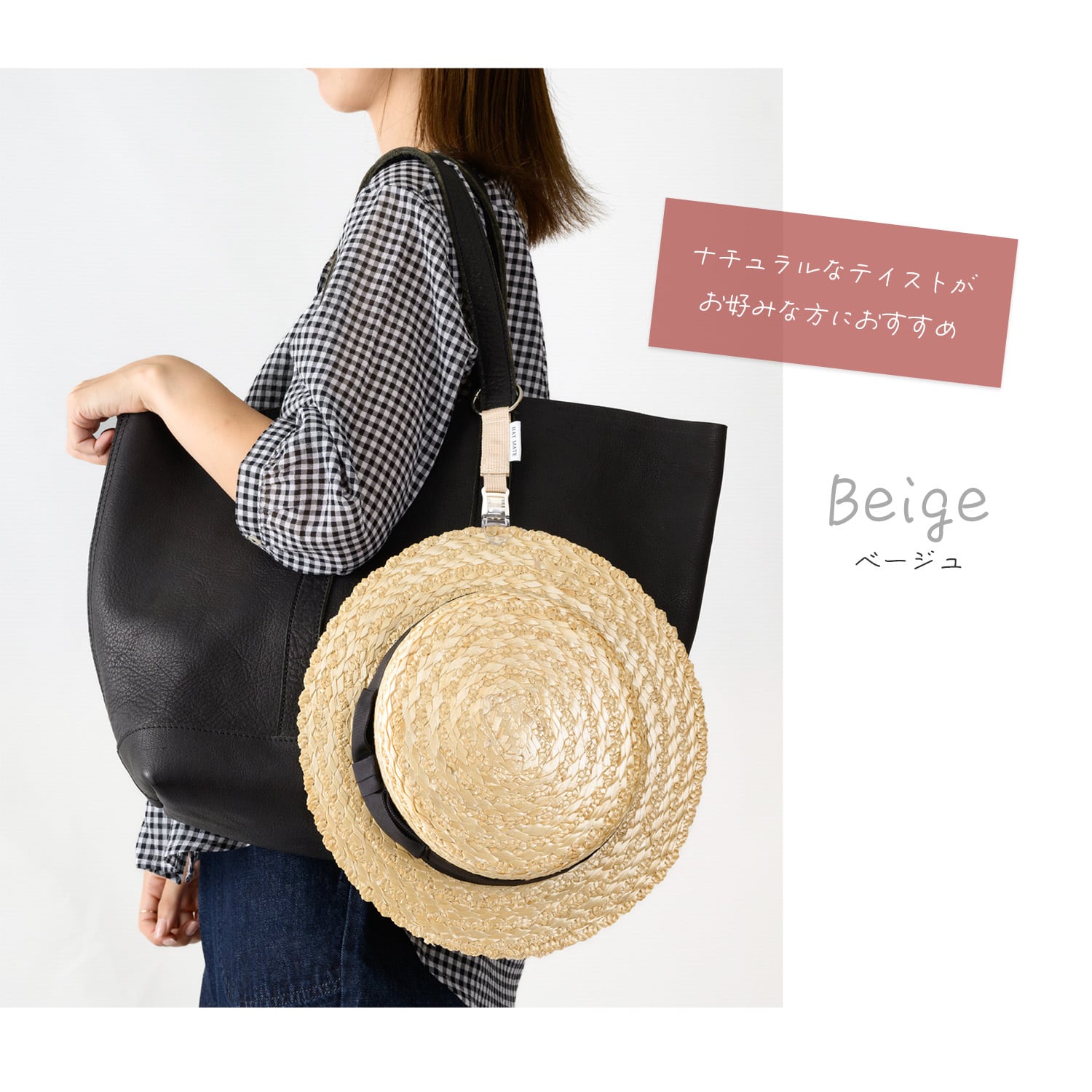 昼間は帽子をかぶるけれど、夜や室内では荷物になってしまったり、置き場所に困ることがあります。さらに、うっかり変な場所に置いてしまい、大切な帽子を忘れることも…。 そんな悩みを解決し、しかもおしゃれに持ち運べるのが「HAT MATE」。大きな円形カラビナと強力クリップで、帽子を安全に持ち運べます。