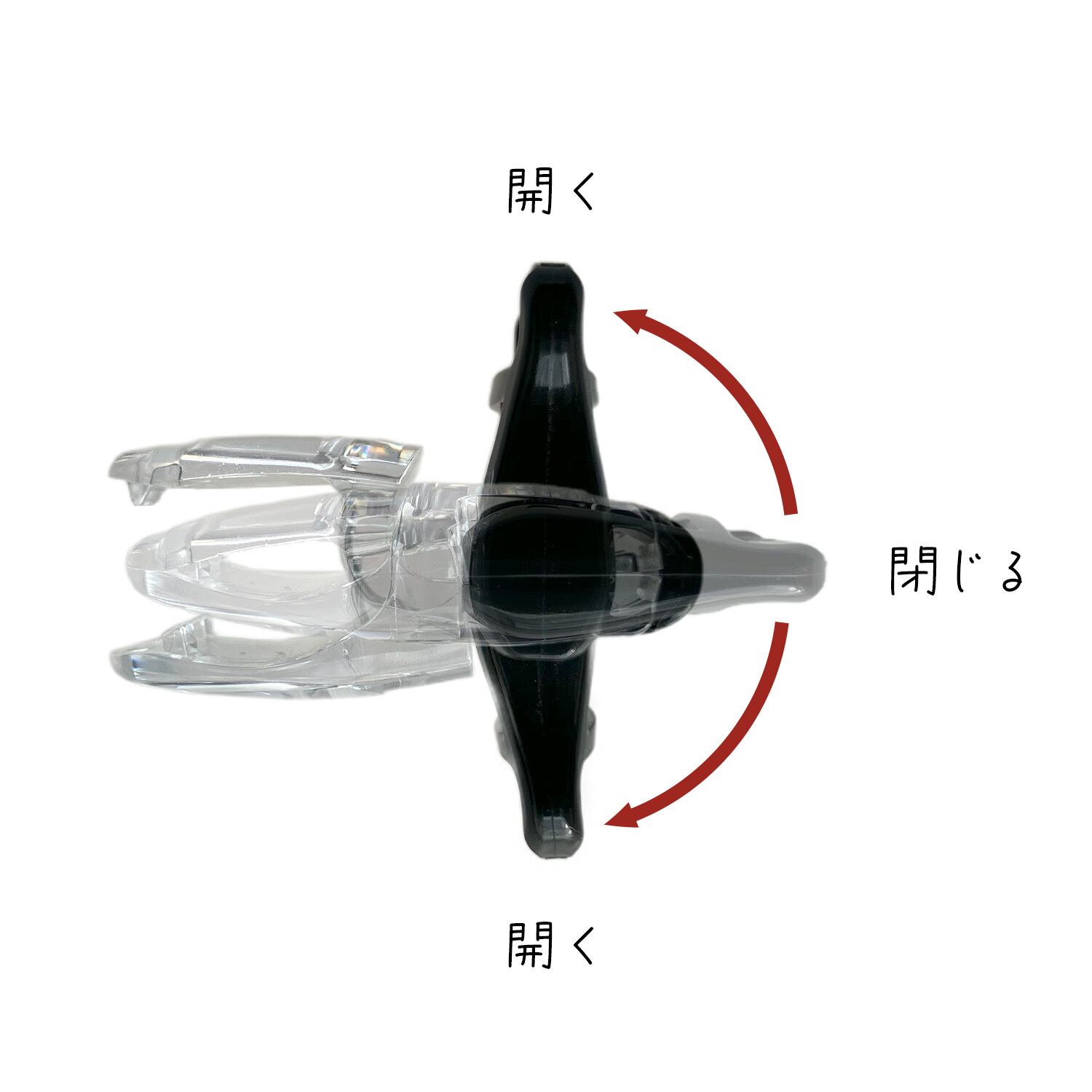 レバーを上下どちらかに倒すだけの簡単操作。ワンタッチでスムーズに開閉できるので、忙しいシーンでもストレスなく使えます。帽子をやさしく挟んでしっかり固定し、バッグやリュックへの取り付けもスマートに行えます。