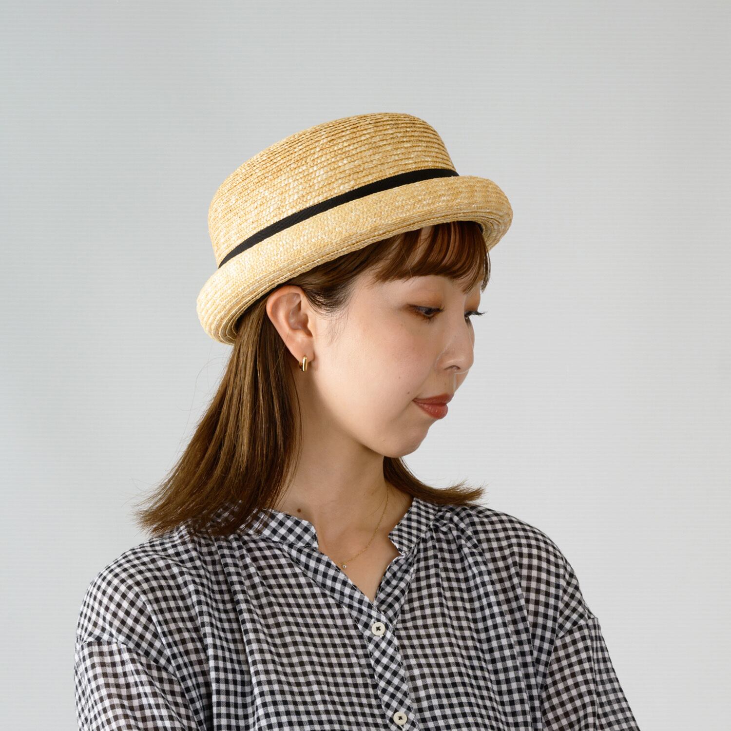 本製品は少し浅めの作りで、つばも短くファッション重視の麦わら帽子です。