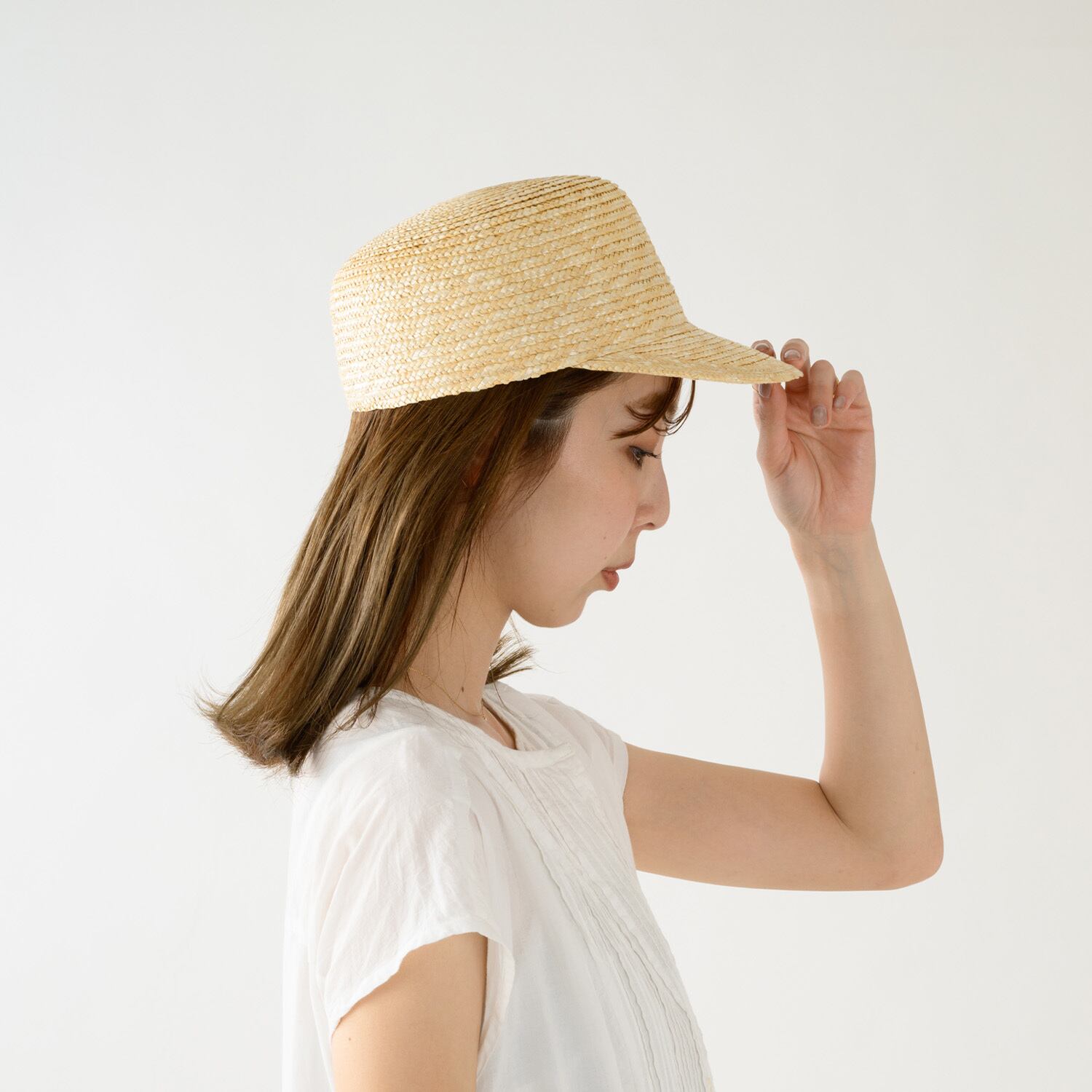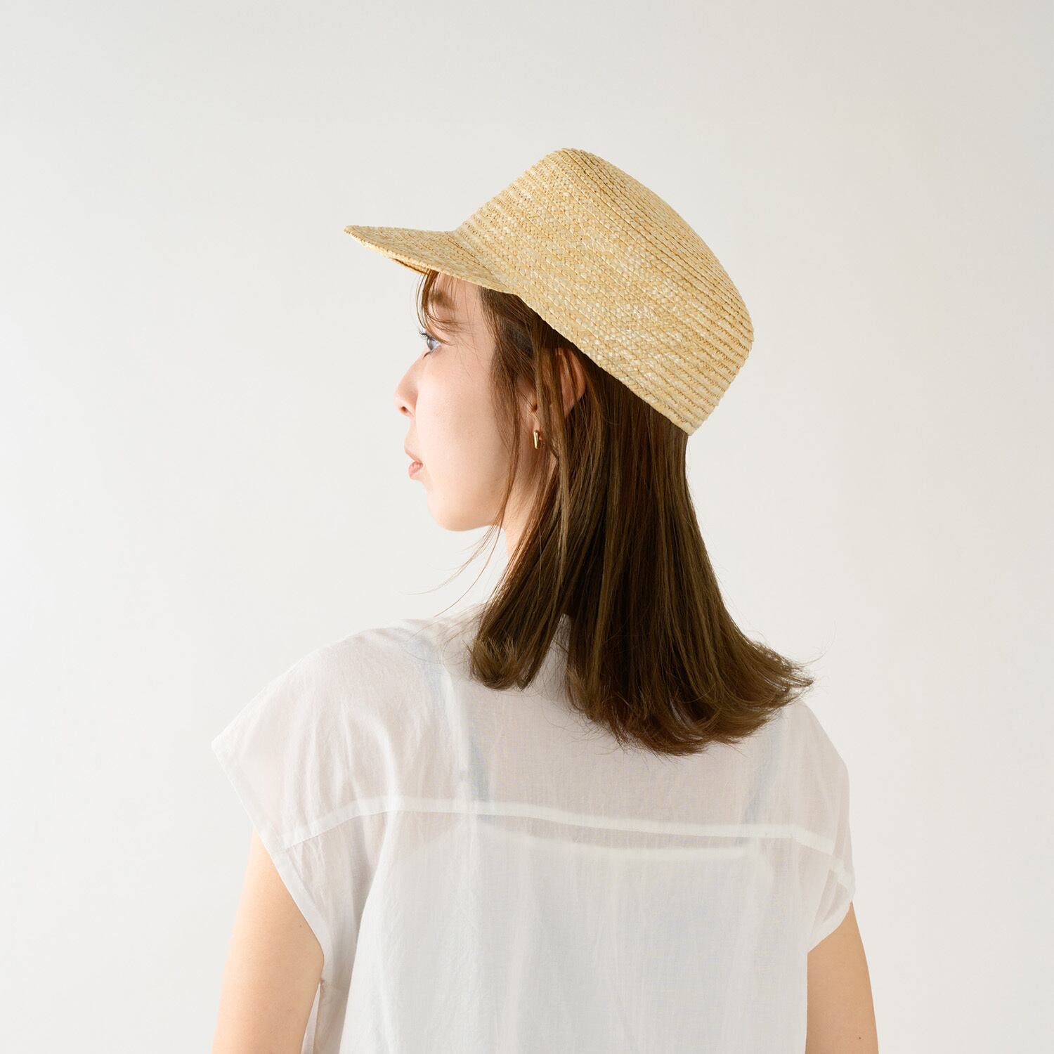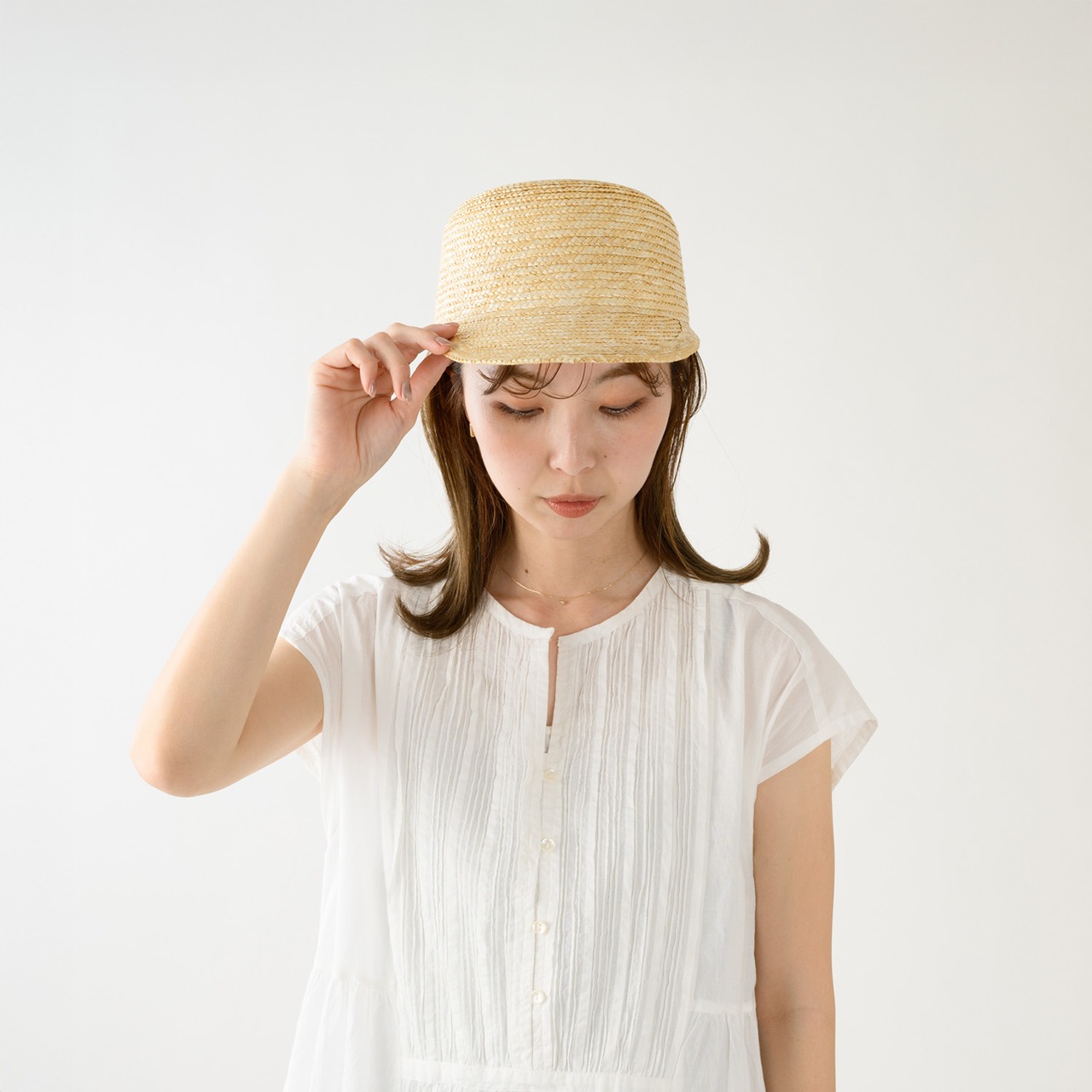 ◆ワークキャップのようなクラウン部分が角丸の麦わらキャップ