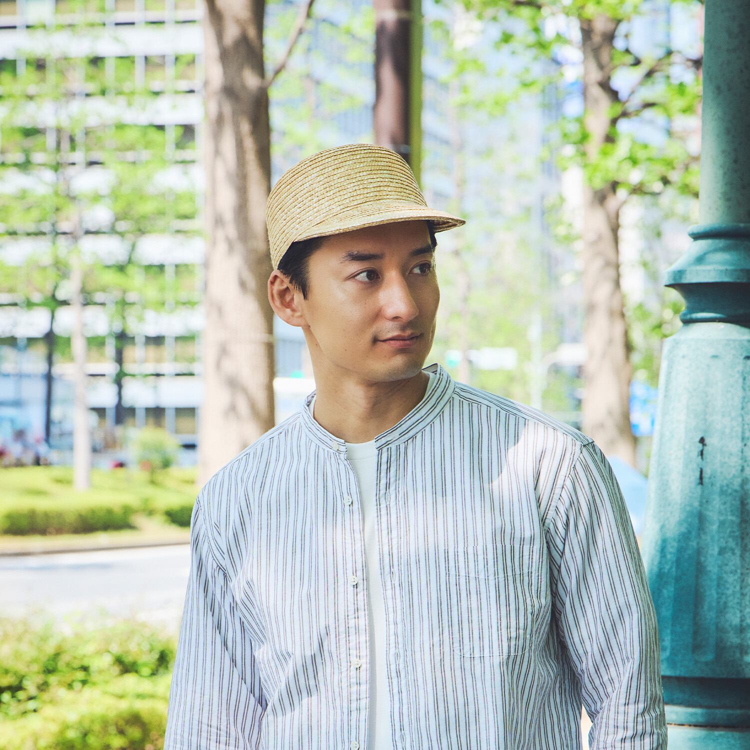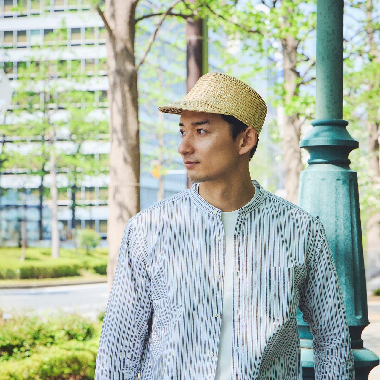 しかも、夏の暑い日など日除けもできて涼しく、また、ちょっと珍しい素材のキャップは大人のワードローブとしておすすめです。